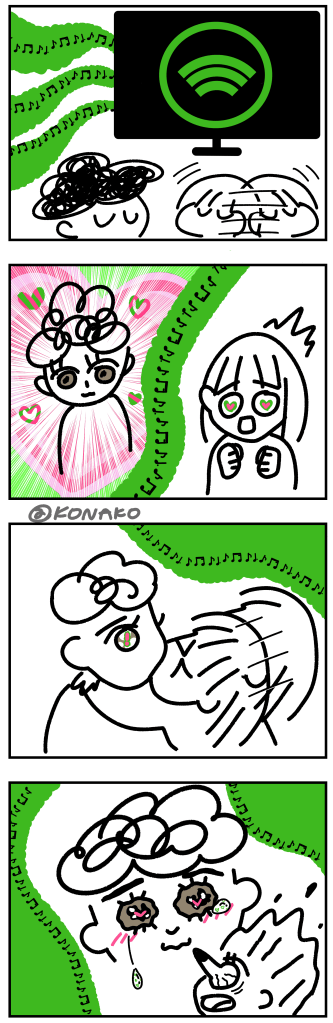 We often listen songs using Spotify on our TV. This is when my partner chose one of the songs which was used for Twilight. ↓This is the song.